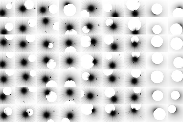 A series of photographs of plants taken through worm-eaten on their leaves. Ernst Mach's "view from the left eye" would be cited for this work. He denied the existence of a border between the inner and outer world and expressed that any phenomena should be based on sensory experience and constructed in relative motion.